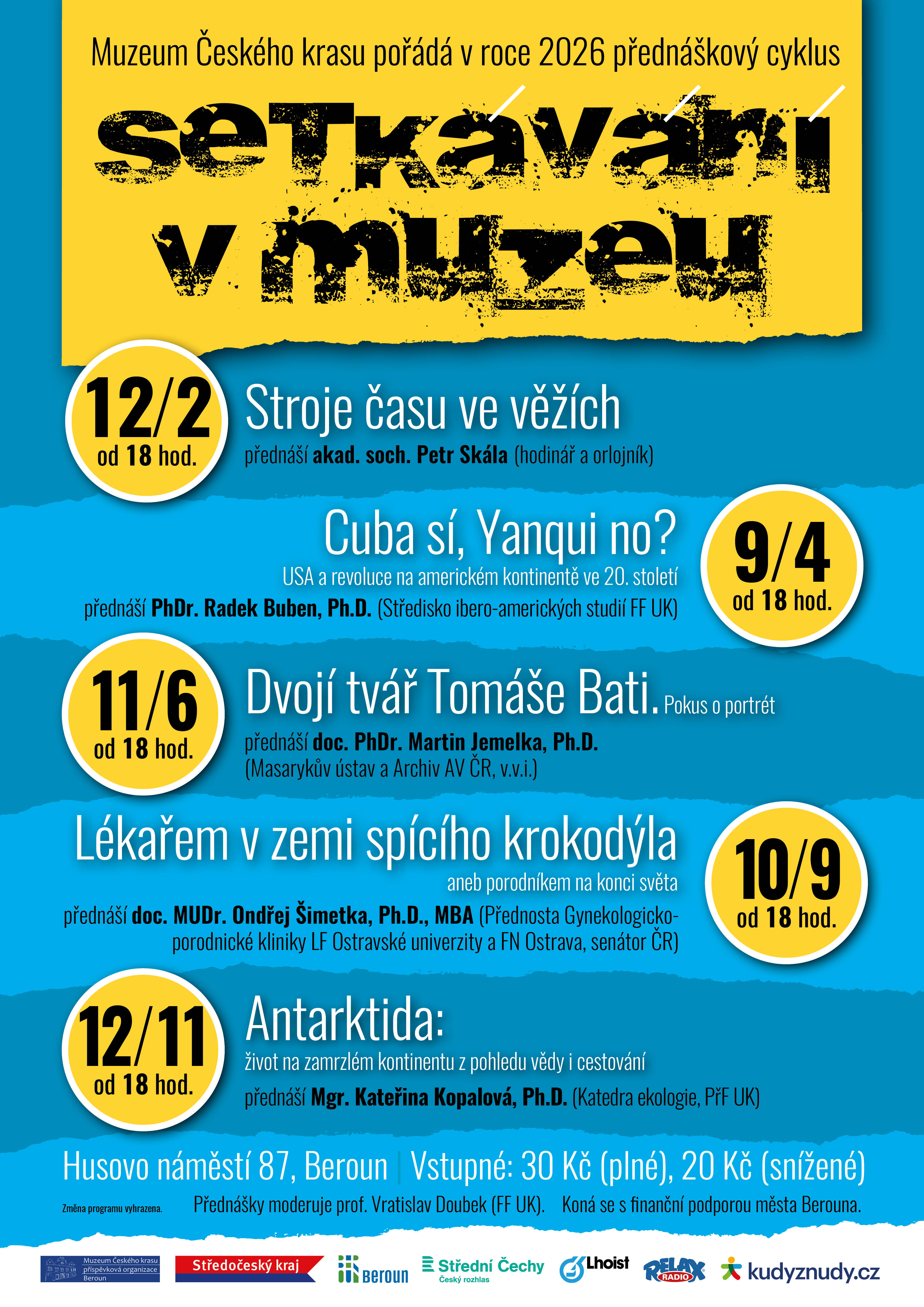 Cyklus přednášek Setkávání v muzeu tvoří v roce 2026 přednášky: