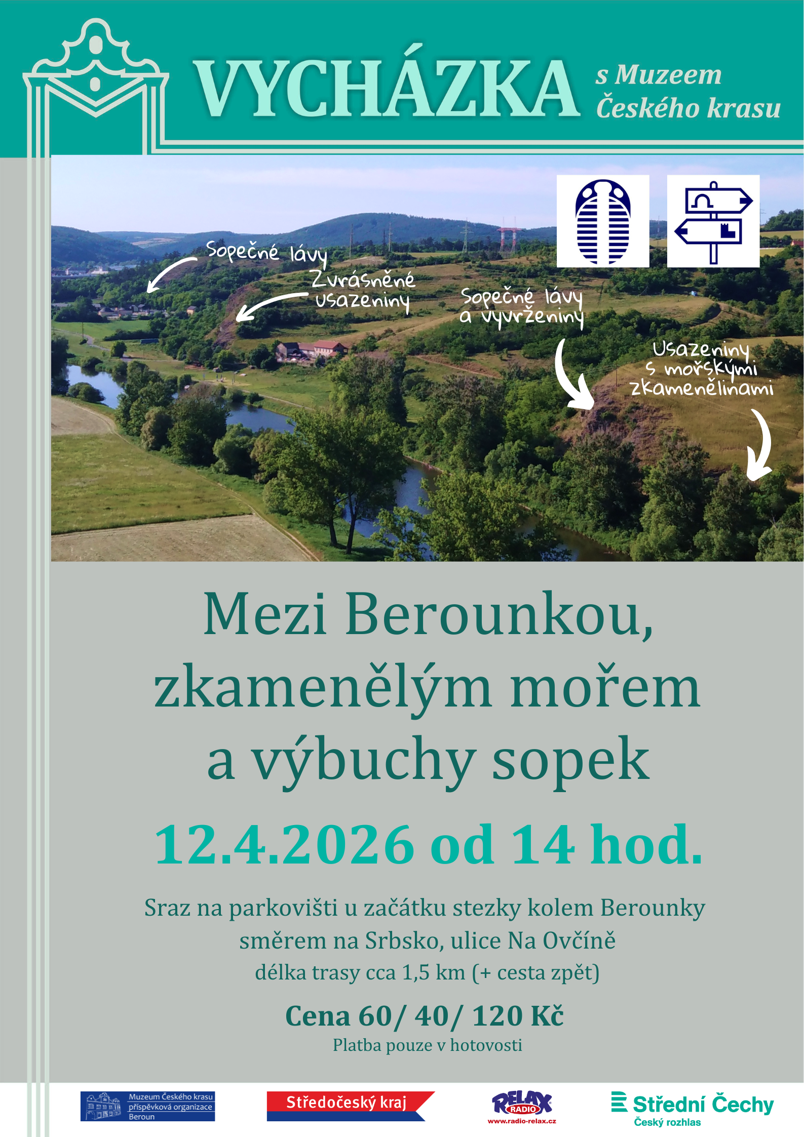 Komentovaná vycházka s geologem kolem řeky Berounky s prohlídkou sopečné lávy, zvrásnělých usazenin i mořských zkamenělin. Dotkněte se pradávného mořského dna a sáhněte si na skutečnou ztuhlou lávu.
