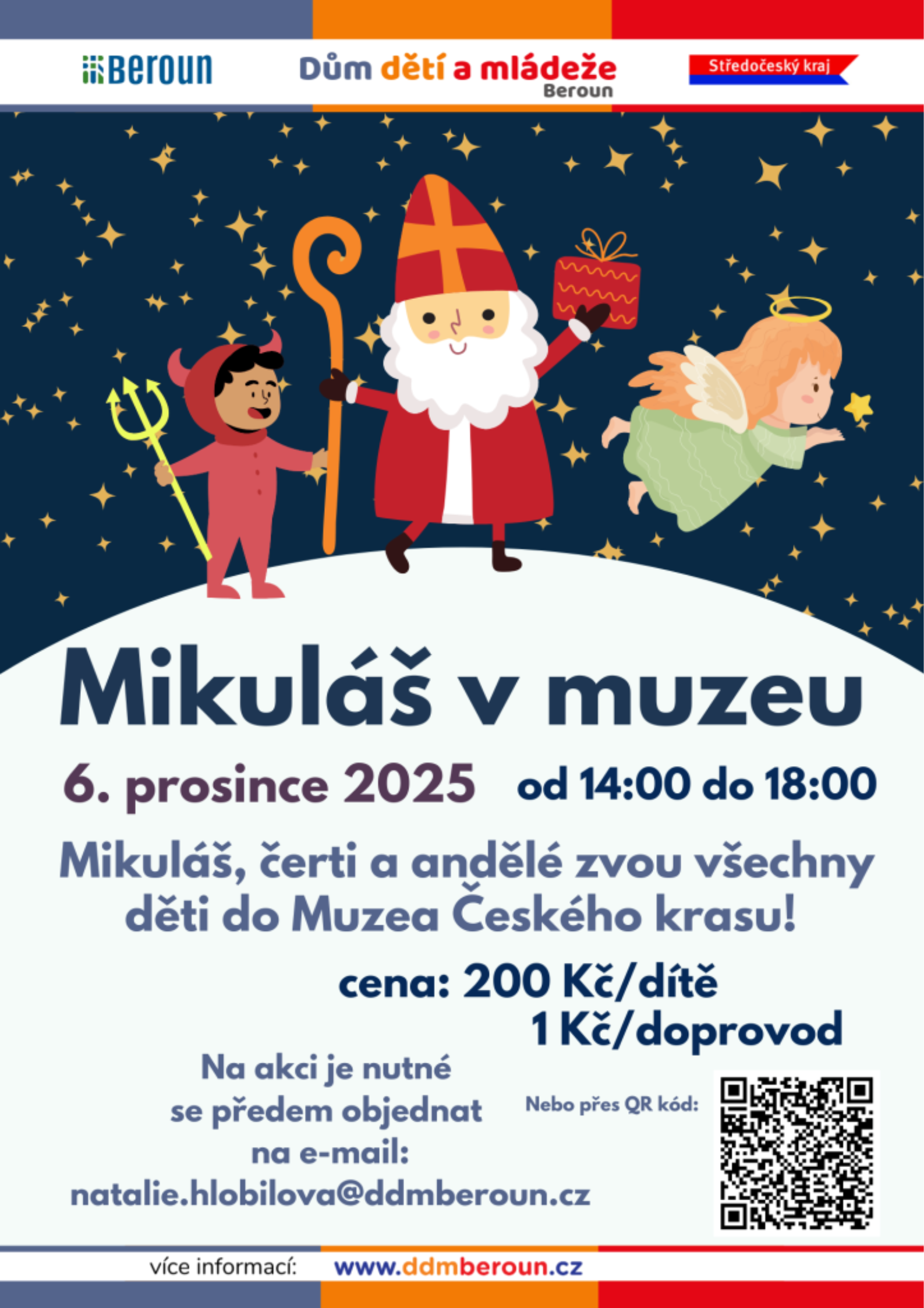 Také letos se Muzeum Českého krasu promění v nebe i peklo. Přijďte si užít mikulášskou nadílku. Akci pořádáme ve spolupráci s DDM Beroun.