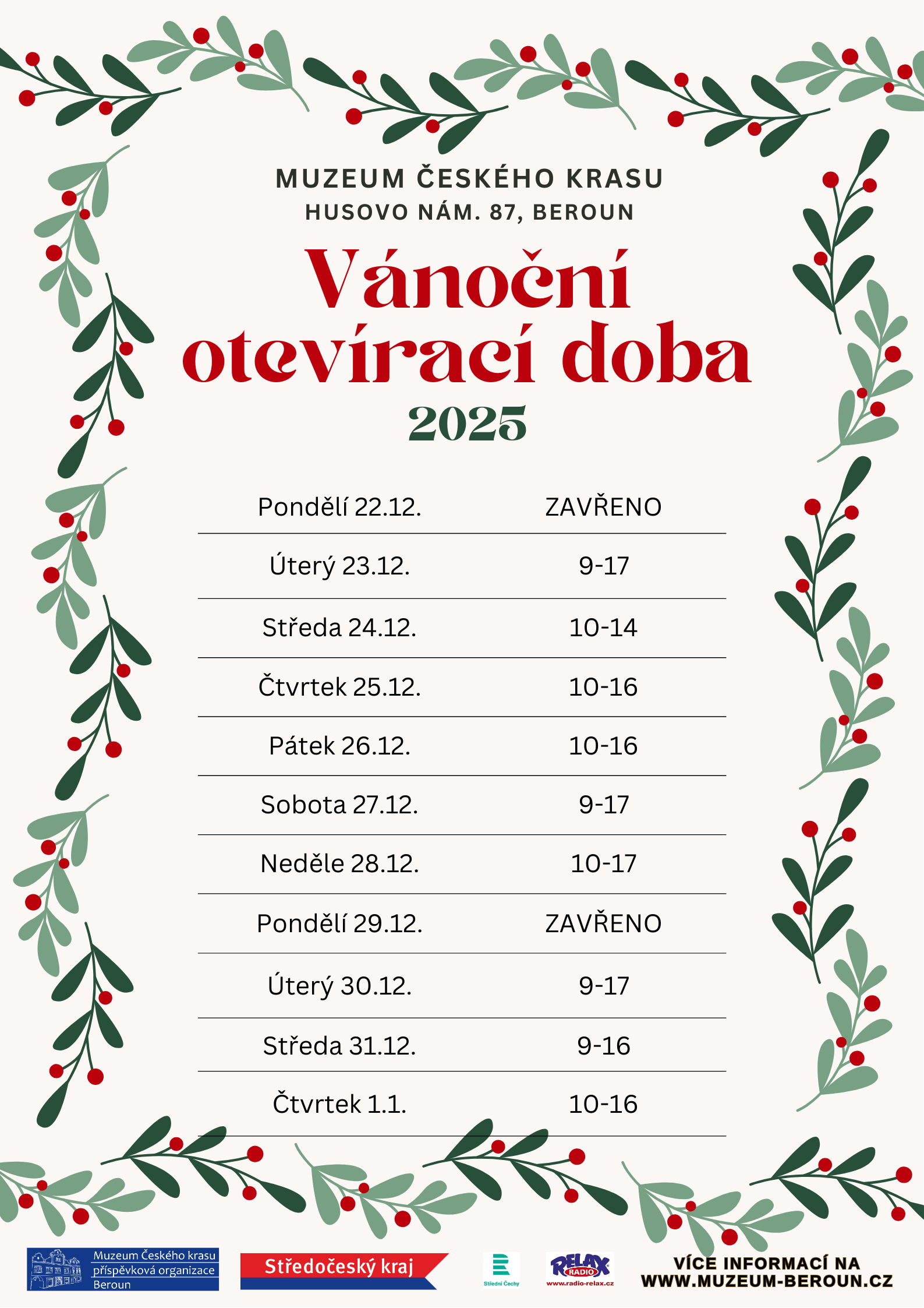 Otevřeno vždy v So, Ne a 25.-26.12. od 10 do 16 hod.